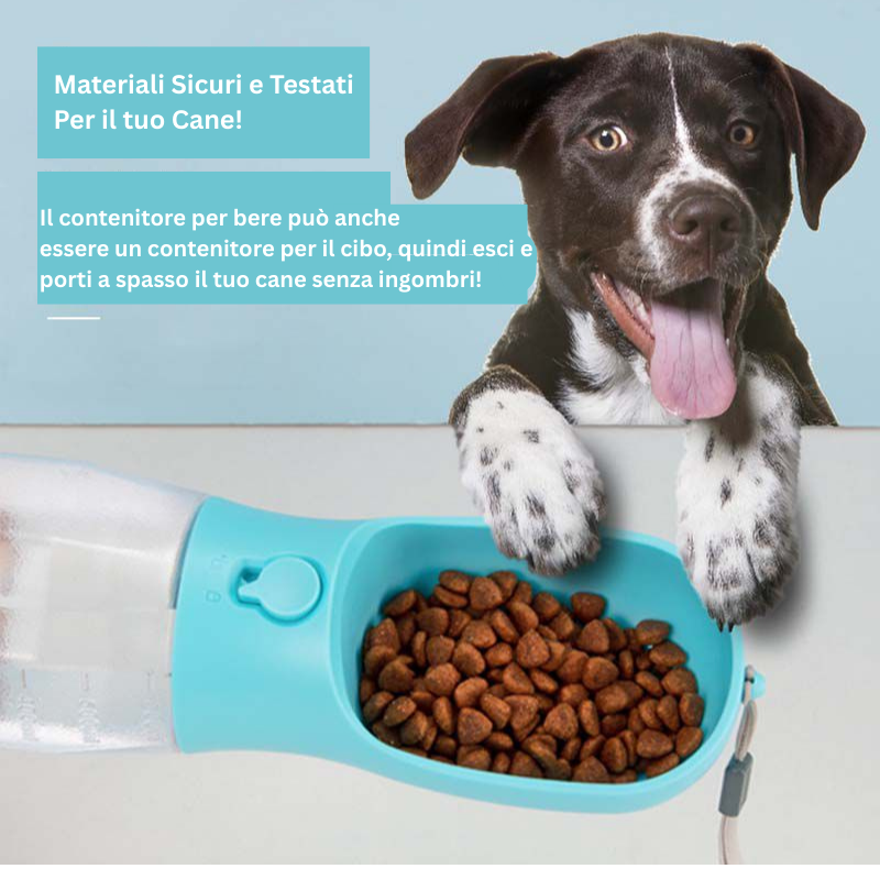 Il design portatile ti permette di uscire leggero e senza pensieri. Può contenere fino a 600 ml d’acqua e 100 g di cibo, più che sufficienti per una passeggiata, una gita al parco o anche un breve viaggio.